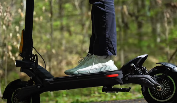 The wide deck and footrest give a sense of stability and ease, while the quad-spring suspension smooths out every bump — making every ride feel effortless. And with modern touches like a sleek color display, NFC card lock, and Zoom hydraulic brakes, customers say it doesn’t just ride like a premium scooter — it feels like they own the road.