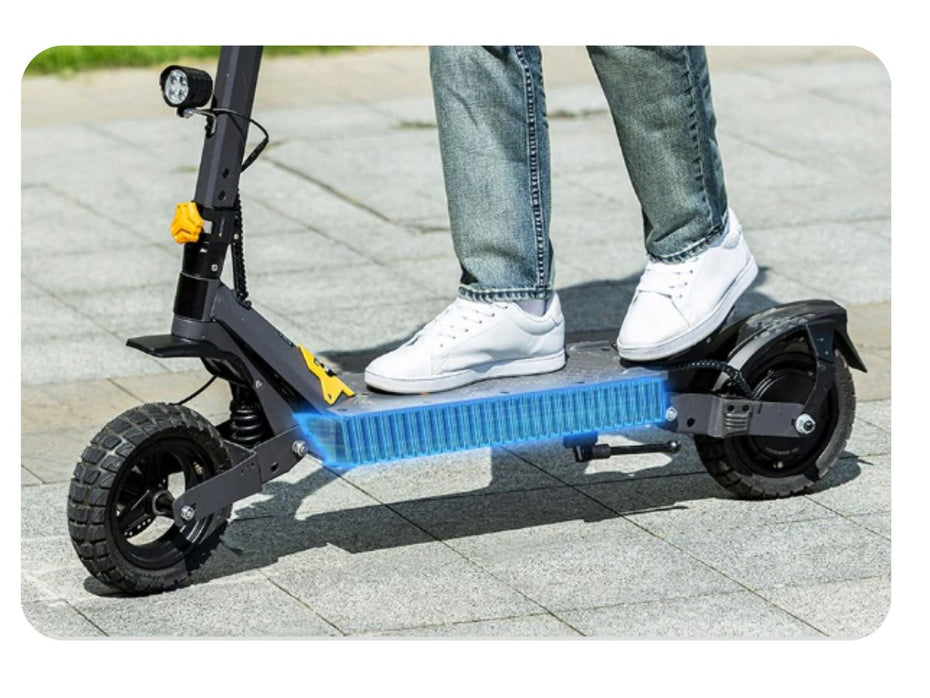Built for urban riders who want performance without compromise, the L1 features a powerful 1000W rear hub motor and a 48V 15.6 Ah battery that delivers up to 44 miles of range. With a top speed of 34 mph and solid 10" tires, the L1 balances speed, comfort, and control—perfect for daily commutes or weekend rides. Its sleek foldable frame, NFC unlock, and dual suspension system make the L1 a smarter, smoother ride.