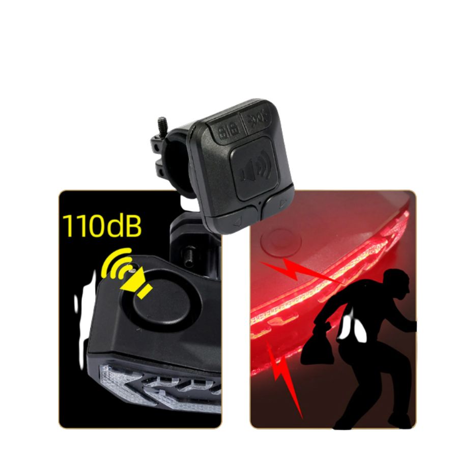 110 DB & IP54 Waterproof Bike Alarm: Anti-theft bicycle alarm can make a loud sound to draw people's attention. 110dB Loud can effectively scare thieves away, IP54 Waterproof bike rear light and remote control ensure that it can be used in all kinds of bad weather.